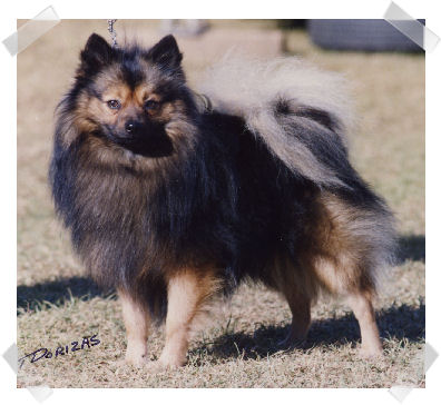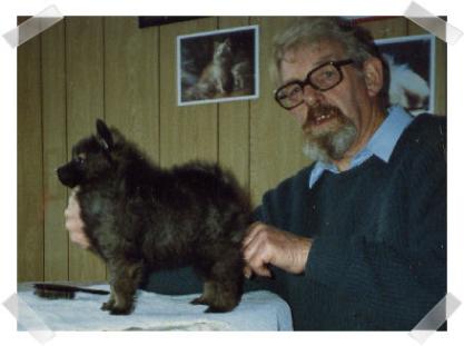 CH ELHAMRA WOLFGANG Spider is the gorgeous sire of the puppies shown below. Shown below with breeder Tony Crosse. A truly stunning sable dog. |